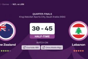 体育资讯8月15日讯 男篮亚洲杯1/4决赛,新西兰队上半场30-45落后黎巴嫩队。